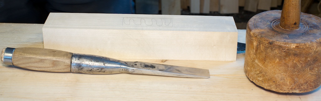 Grovarbeidet er det godt å gjere med eit kraftig hoggjarn. Dette er eit 1″ hoggjarn som er smidd av Øystein Myhre. Det er laga etter ein eldre modell. Klubba er gamal og frå Granvin i Hardanger. Hovudet er av ei furu rikule og skaftet av bjørk. Foto: Roald Renmælmo
