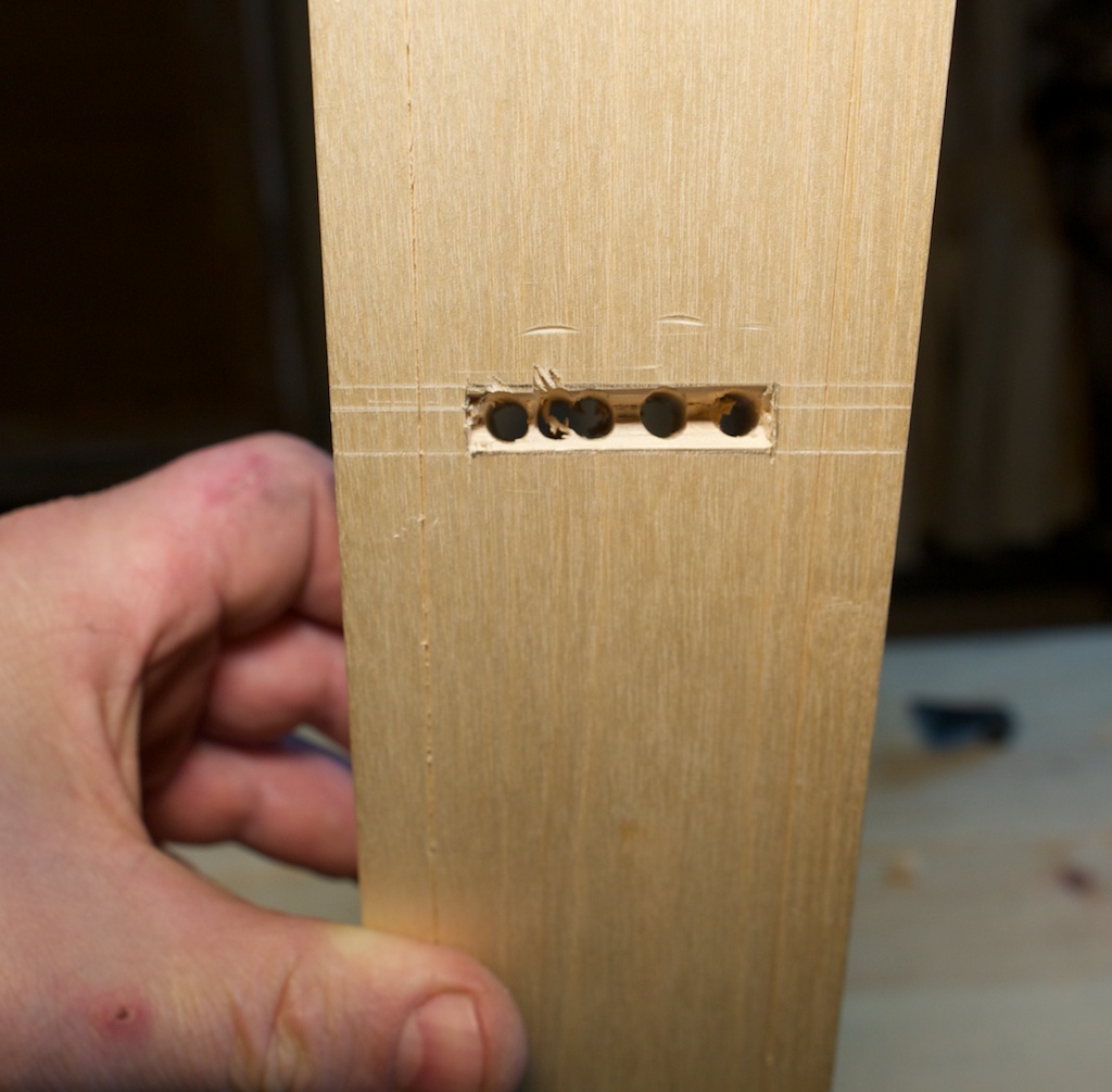 Previous Image Next Image Rad med hol Eg borer fleire hol, så tett som eg kan med navaren. Legg merke til at eg er forsiktig med å ikkje bore for langt ut mot kvar kant. Foto: Roald Renmælmo Del dette: Click to email a link to a friend (Opens in new window) e-post Klikk for å skrive ut (Opens in new window) Skriv ut TweetLik Lastar …