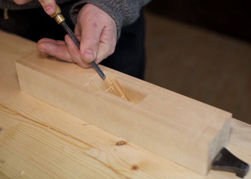 Sidan det er så lite material som skal bort så brukar eg eit smalt stemjarn. Eg brukar eit låst fingergrep for å kontrollere jarnet så det ikkje glepp ut og skjer feil. Foto: Roald Renmælmo