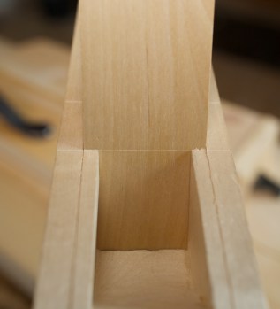 Kilen er sett i etter justering. Her er rissen for utmålinga kome akkurat ned til inngangen av kilegangen. Merkinga var med andre ord ganske presis. No merkar eg på for utsaging av åping for sponrommet. Foto: Roald Renmælmo