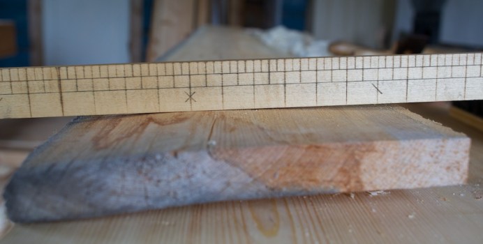 Det bordet som tok lengst tid å høvle var dette. Det er både kuva på langs og vinna. Totalt gjekk det 26 minutt å skrubbhøvle og sletthøvle dette bordet. Det er ⅓ av tida det tok å høvle totalt 6 bord. Det lettaste bordet tok 5 min å høvle. Foto: Roald Renmælmo
