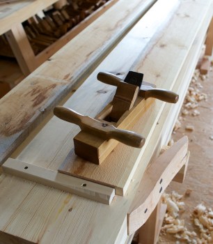 Skrubboksen med grovstilt tann er det rette verktøyet til den første grovhøvlinga. Når sponene blir opp mot 0,5 mm så er det ikkje mange høveltak før bordet er høveleg flatt. Foto: Roald Renmælmo