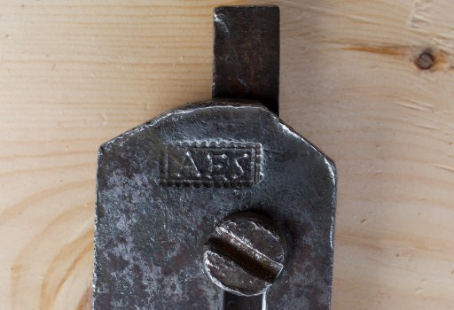 Ståla er stempla med smedstempelet AES. Truleg er det ein lokal smed i området rundt Hadeland. Kom gjerne med tips på aktuelle smedar som kan ha hatt dette stempelet. Eg tenkjer meg at slike stål er smidd på bestilling av snikkaren og at det er ein smed i nærområdet der høvlane var brukt som har smidd dei. Det er også mogleg at høvlane eller ståla kan ha kome frå ein annan stad og såleis ikkje er lokale. Foto: Roald Renmælmo