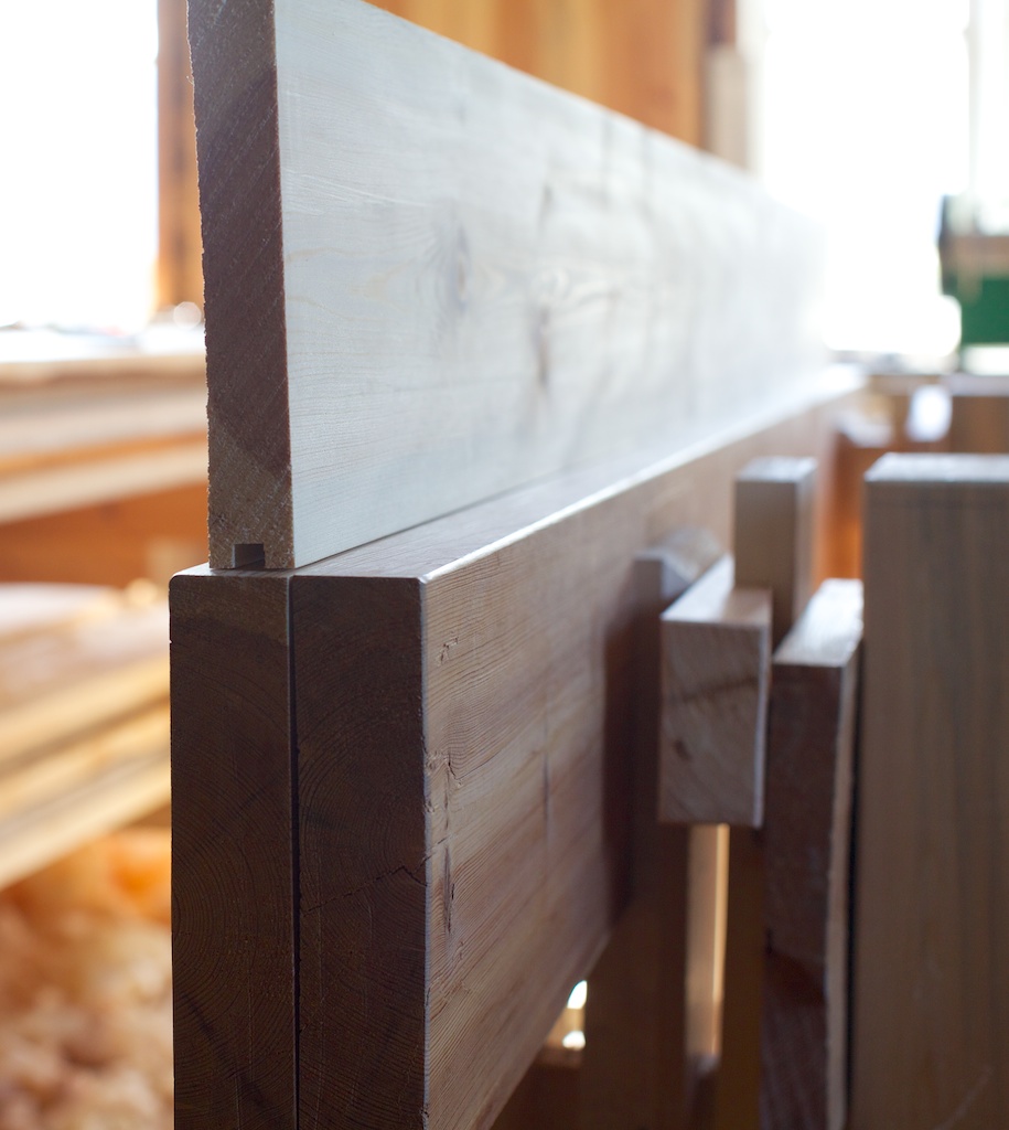 Ganske riktig var det ein liten kuv i langborda. Glipa mellom langbordet og bordet er dobbelt så stor som feilen, det viser tydeleg. Det er ikkje mykje høvling med langhøvelen som skal til for å fjerne dette avviket så ver forsiktig. Eg justerer langborda med langhøvelen og prøvar på nytt og skyte beint bordet og prøver til eg er fornøgd. Dette golvbordet er litt vindt og er derfor ikkje optimalt for bruk til retting av langborda i skottbenken. Foto: Roald Renmælmo