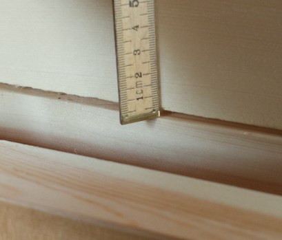 For å samanlikne har eg lagt på eit golvbord som ikkje er høvla på kant og har kantinga frå saga. Det har ein langkrok på nesten 4 mm. Det er ein dramatisk feil om det ser slik ut etter høvling. Dette for å vise nyansane. Foto: Roald Renmælmo