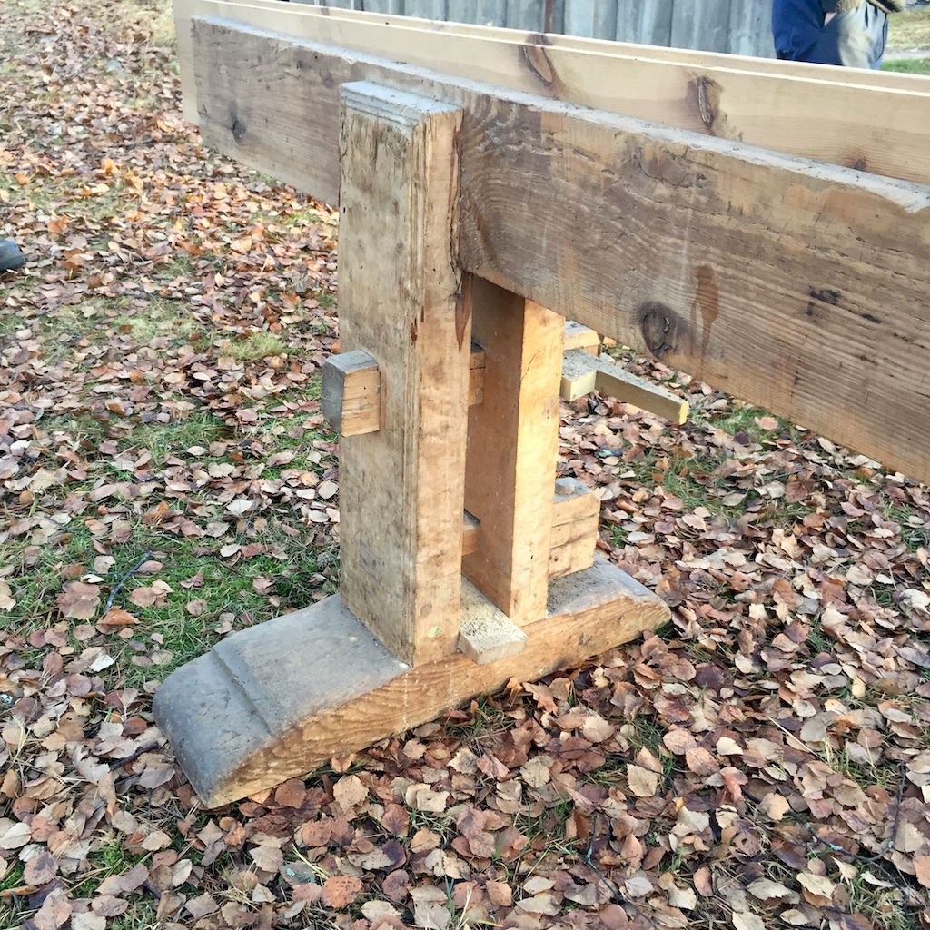 Føtene har ei fotplate som er litt i overkant av ein alen lang og som er avslutta med ei utskjering. Spenntappen er av bjørk og har eit hovud i eine enden. Foto: Roald Renmælmo