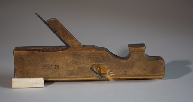 Previous Image Next Image Nothøvel Nothøvel med fast land. Høvelen er laga av bjørk og 11″ lang. Han er merka med PP.N. Foto: Roald Renmælmo Del dette: Click to email a link to a friend (Opens in new window) e-post Klikk for å skrive ut (Opens in new window) Skriv ut TweetLik Lastar …