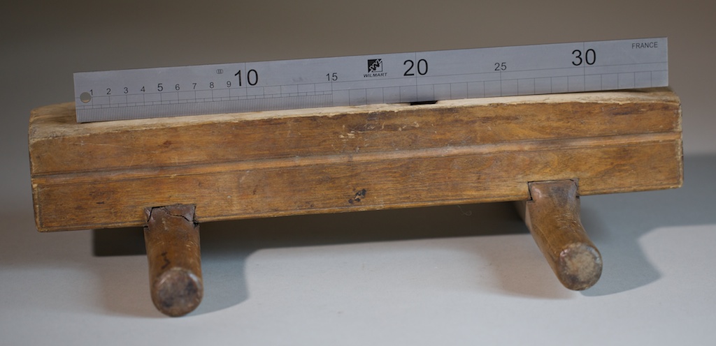 Okshøvelen frå førre bilete med solen opp. Solen er kraftig runda for å kome ned i groper. Eg er usikker på kva den kan ha vore brukt til? Det kan vere for å høvle tømmerveggar som har vore rydd med øks på førehand? Foto: Roald Renmælmo