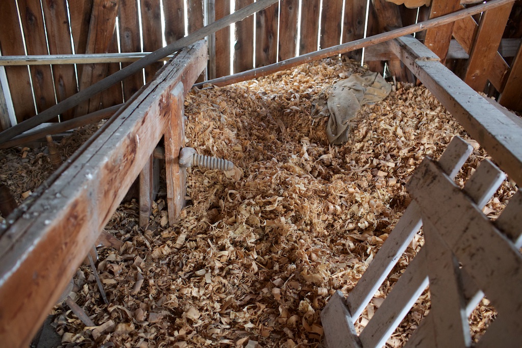 Spona frå siste gong skottbenken var i bruk har vorte liggande att. Det verkar som det meste av spon som ligg på toppen er frå høvling av flask og kant. Spon frå pløying av bord kunne eg ikkje finne i første omgang. Foto: Roald Renmælmo