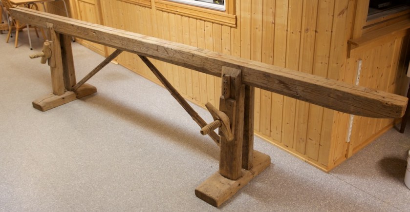 Next Image Skottbenk i Mosjøen Skottbenk i samlinga til Helgeland museum i Mosjøen. Benken har skruvar for stramming og skråband for å stive av på lengda. Foto: Roald Renmælmo Del dette: Click to email a link to a friend (Opens in new window) e-post Klikk for å skrive ut (Opens in new window) Skriv ut TweetLik Lastar …