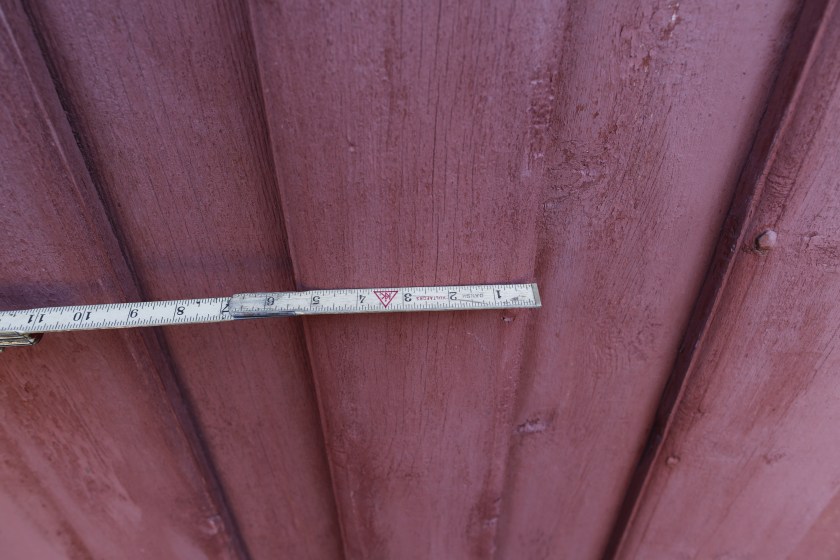 Bordkledinga på nordveggen har påbord som er kanta og høvla på flata. I tillegg er det høvla ein staffprofil på kanten. Borda er spikra med smidd spikar heilt i kanten av bordet, i sida av profilen. Spikaren går også gjennom under- bordet og såleis får påbordet god støtte der spikaren er. Denne bordkledninga er truleg frå då huset vart kledd fyrste gongen, truleg kring 1824. Desse borda og spikrane er minst like gode som nye bord. Ved å ha stått på veggen i snart 200 år har dei vist at dei så gode som ein kan få. Vi kan ikkje rekne med å gjere dette betre. Vi vel derfor å ikkje gjere noko med dei delane av bordkledinga som er bra slik som på biletet.