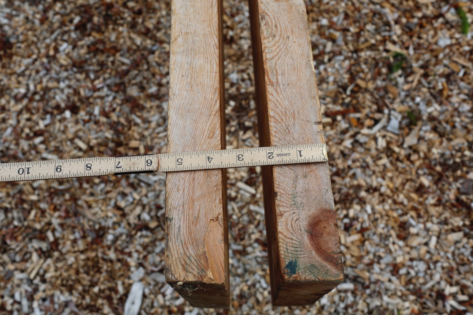 Langborda var saga 2″ x 8″ (norske tommar) og høvla flate på margsida som vender inn. Lengda på borda var 5,28 meter. Utvendig og under var det stort sett sagskur å sjå i overflata. Foto: Roald Renmælmo