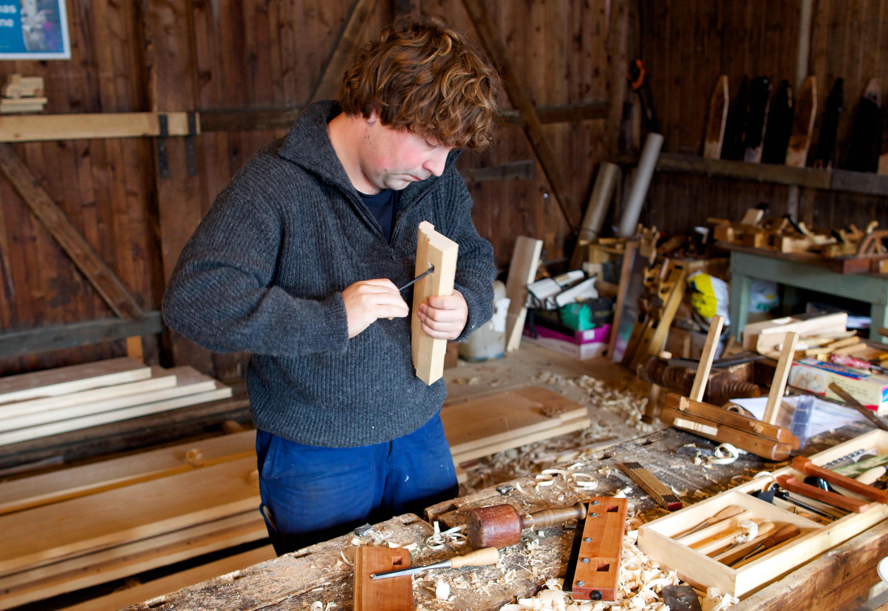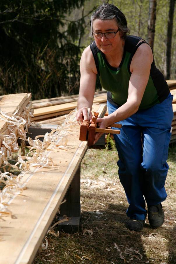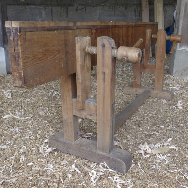 The skottbenk are built from the plans of the original skottbenk found in Amana, Iowa in anticipation of making flooring, window sash, doors and other millwork. If they are able to set up a working shop in the second floor of the building, the skottbenk will become a permanent fixture there. They hope to reproduce the cabinet work of Aslak Olsen Lie within the shop using traditional tools and techniques. There are many existing pieces of Lie´s work in the area.
