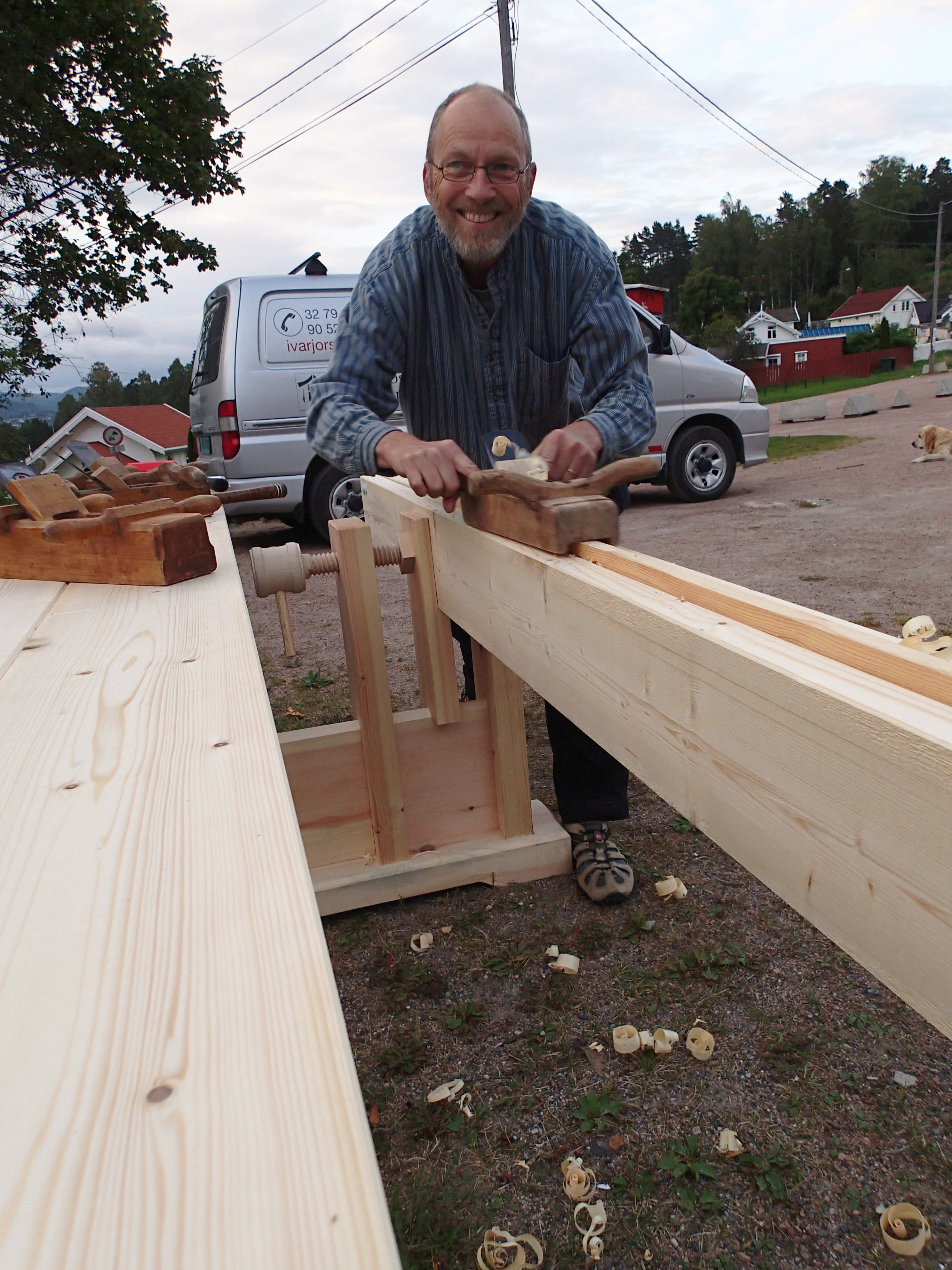 We in the Union concratulate Nels at Folklore Village as the first official member of Norsk Skottbenk Union in USA. Now we hope many more will come in the years to come. The skottbenk made by Nels are made to be dismanteled for transportation and can also have longer jointing boards for jointing longer pieces. The bench has many very nice and clever details and will serve its owner for many years to come.
