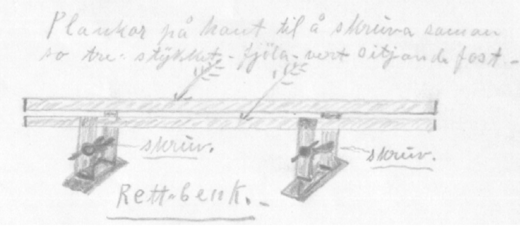 Skisse av rettbenk av S. J. Almås i Hølonda frå 1934.