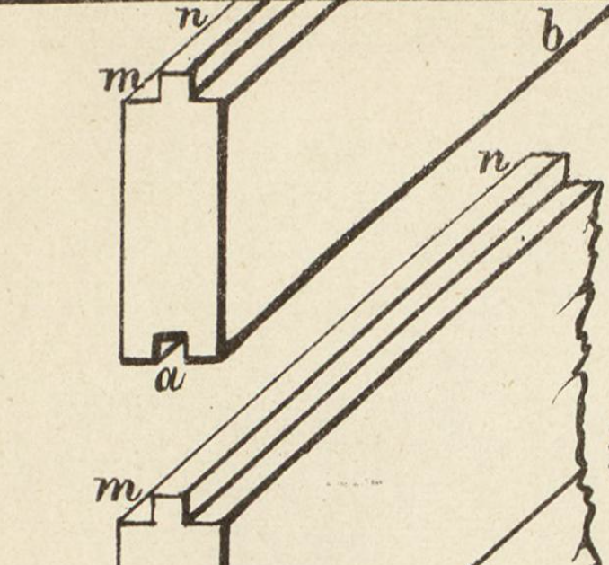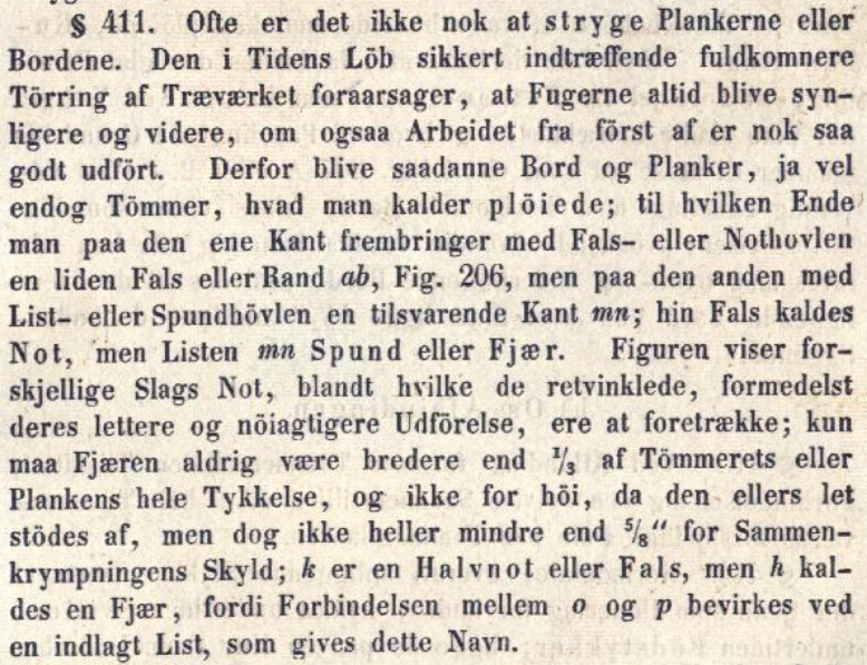Vidare i teksten forklarar Broch om pløying av bord. frå «Lærebog i Bygningskunsten» av Theodor Broch, 1848.