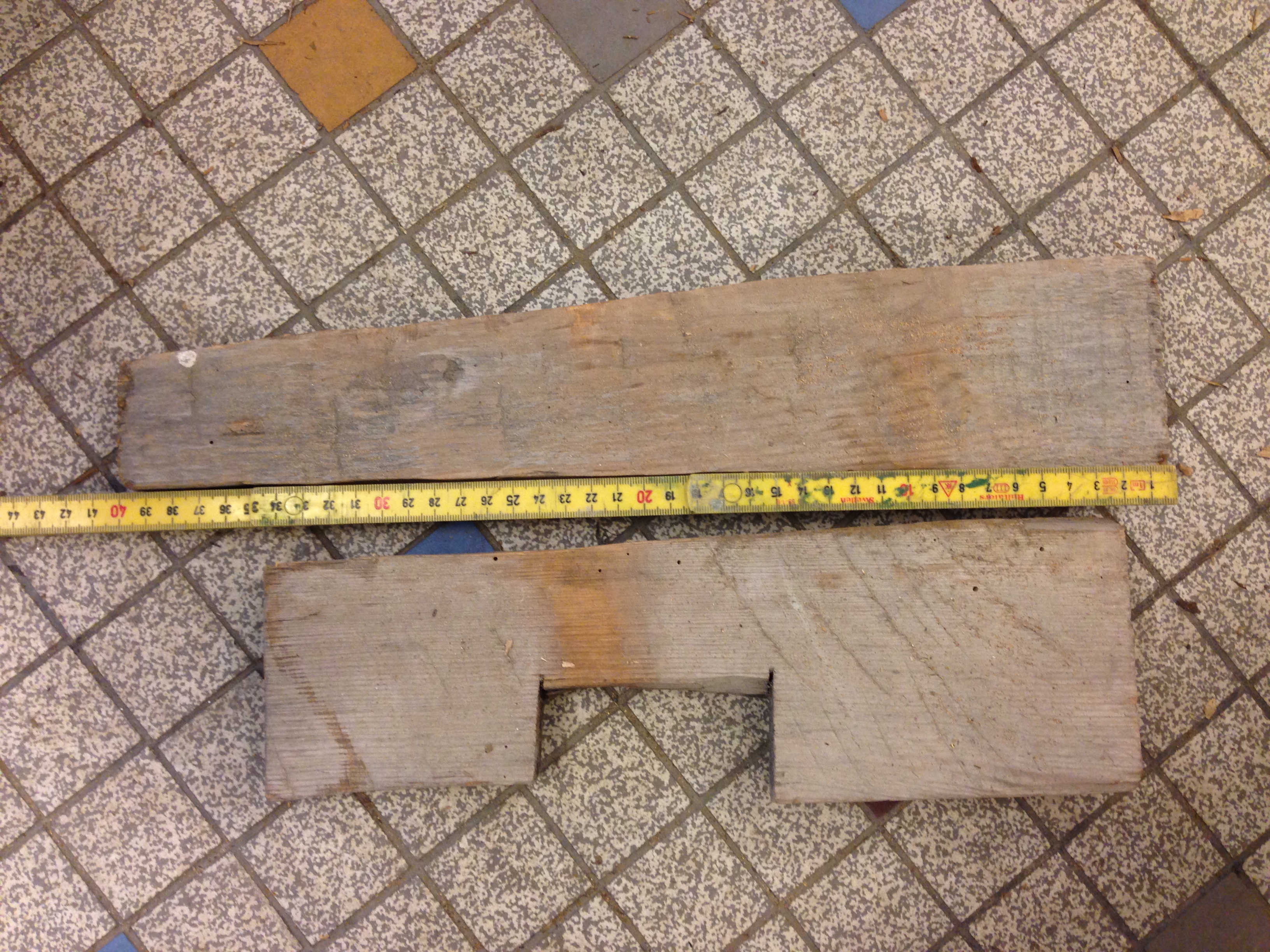 Langbordene er av gran, normalt med kvist her og der, men ganske jevnvokst og lite spor av tennar og spenninger. De har unngått rota på treet her, og funnet rolig ved, men ellers ikke vært så nøye på kvaliteten. Langbordet som er fast har to loddrette hull, som dannes av hver sin klave i bjørk på yttersiden, Disse er spikret fast i langbordet, og er pent avrundet, siden dette er den siden du står når du høvler. Det faste langbordet er tredd ned over toppen av den ene stolpen på hver fot, og er nøyaktig felt, slik at det låser godt med lite slakke.