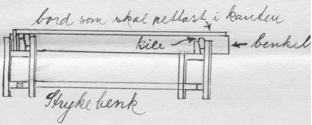 Skisse av strykebenk i svaret frå Knut Dalen.