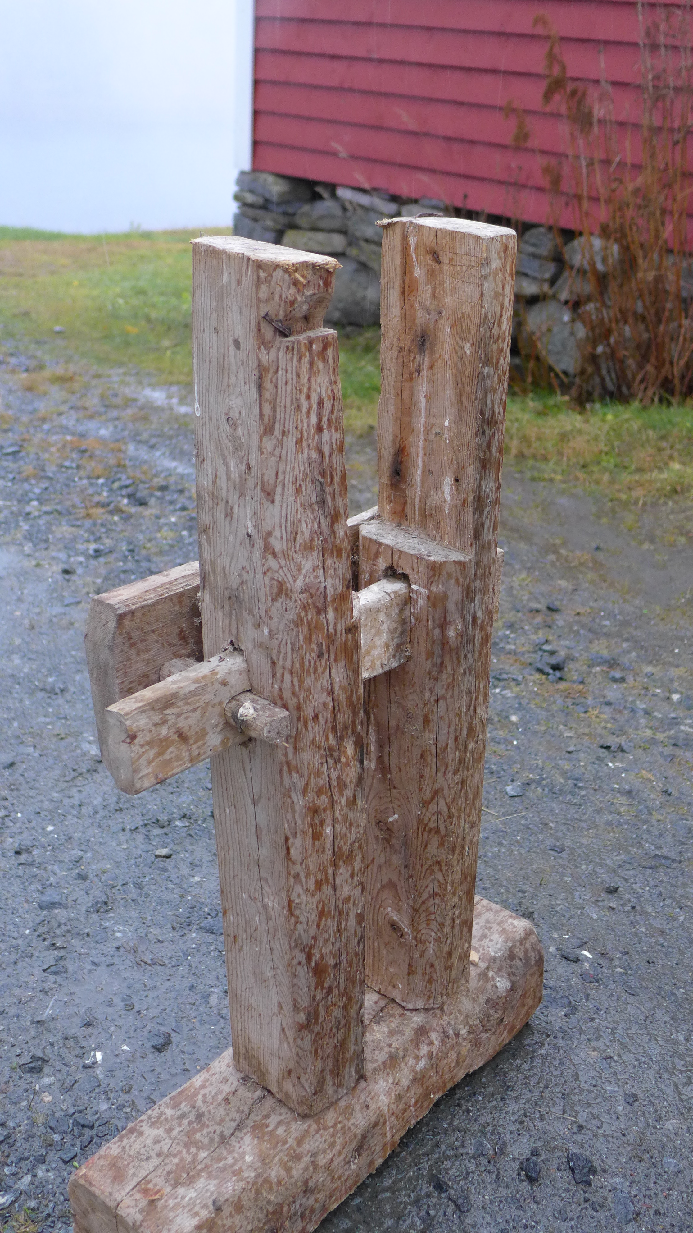 Previous Image Next Image l1050271 Tverrtre av bjørk med kile gjennom eit hol. Det er hogd ut for langborda øverst på stavane. Foto: Siv K. Holmin. Del dette: Click to email a link to a friend (Opens in new window) e-post Klikk for å skrive ut (Opens in new window) Skriv ut TweetLik Lastar …
